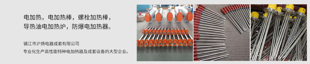 鎮江市滬揚電器成套有限公司,座落在風景秀麗的江中明珠——揚中市二橋工業園區。本公司是專業化生產高性能特種電加熱器及成套設備的大型企業。主導產品有單端、粗直徑、大功率電加熱管以及大功率的電加熱爐。開發研制的高科技產品。該產品的優越性是其它任何電加熱管及任何加熱形式不可替代的,現已形成全國生產基地,同時生產各種防爆電加熱器及電加熱爐;合成用大功率電加熱器、電加熱反應釜;鍋爐用集束式電加熱管組及各種形式的承壓電加熱管;溶鹽、酸堿等腐蝕性加熱介質用不銹鋼,聚四氟乙烯、鈦以及其它各種條件下的異形 管狀電加熱元件,各種非管狀形式的電加熱器。